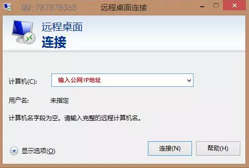 3、遠(yuǎn)程桌面連接 登陸 我的電腦--運(yùn)行-- Mstsc 輸入公網(wǎng)IP 地址,用戶名& 密碼